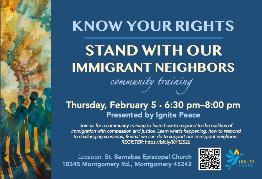 Join us for a community training to learn how to respond to the realities of immigration with compassion and justice. Learn what’s happening, how to respond to challenging scenarios, and what we can do to support our immigrant neighbors.