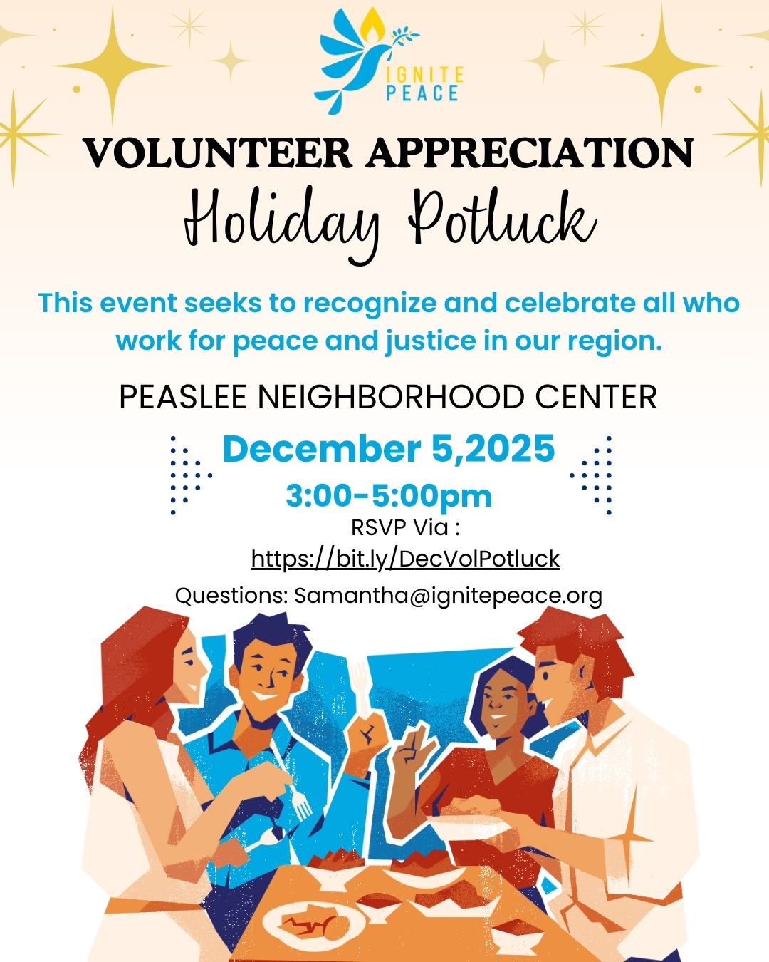 This event seeks to recognize and celebrate all who work for peace and justice in our region. Everyone from our immigration justice, criminal justice, nonviolence and anti-racism work is invited!