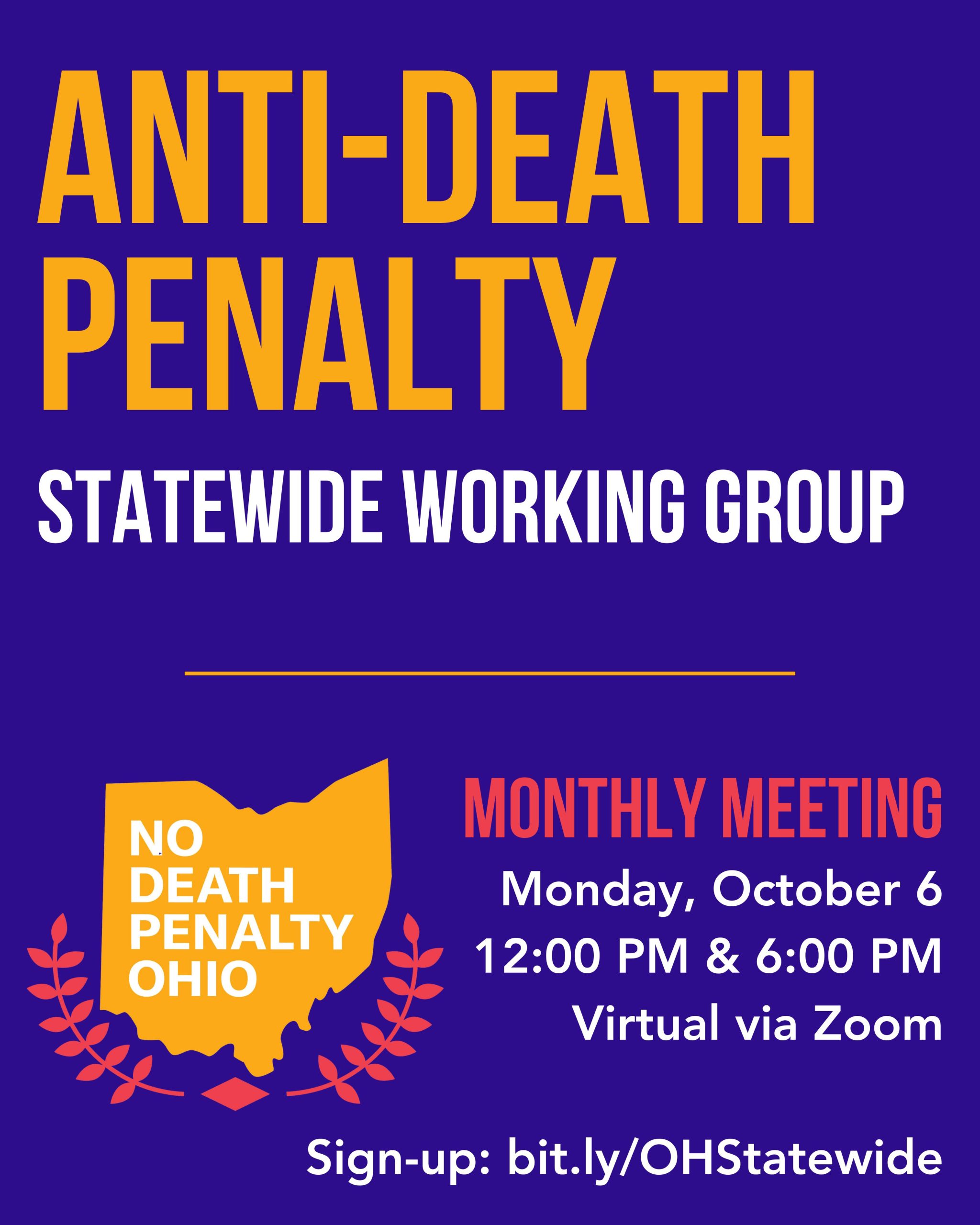 You can join the death penalty abolition effort by attending our monthly meetings on the first Monday of every month at either 12:00 PM OR 6:00 PM.